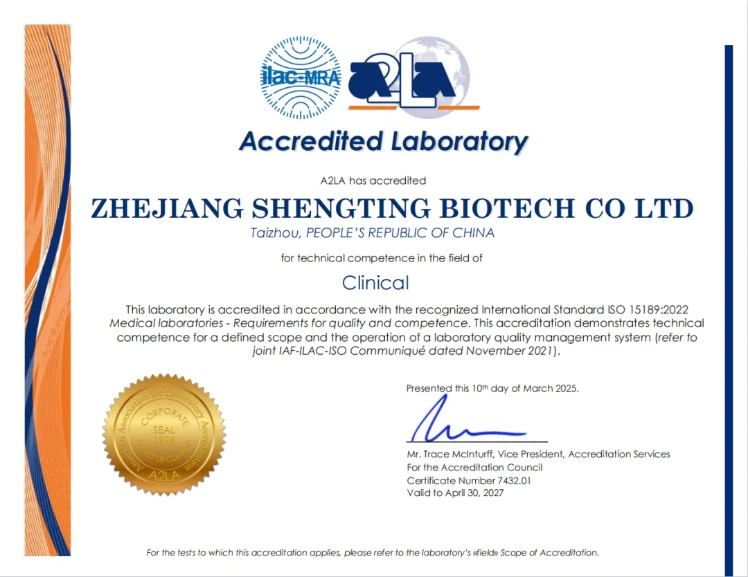 2025年初春,圣庭醫(yī)療“零缺陷”通過ISO 15189醫(yī)學(xué)實(shí)驗(yàn)室質(zhì)量與能力國際標(biāo)準(zhǔn)認(rèn)證,標(biāo)志著公司在醫(yī)學(xué)檢測服務(wù)的質(zhì)量管理體系、技術(shù)能力、人員素質(zhì)及服務(wù)水平等方面均達(dá)到國際先進(jìn)標(biāo)準(zhǔn)。令人振奮的是,圣庭醫(yī)療由此成為國內(nèi)首家在腫瘤和感染NGS雙項(xiàng)目上獲得CAP+ISO 15189國際“金標(biāo)準(zhǔn)”雙認(rèn)證的公司!品質(zhì)鑄就信賴,圣庭醫(yī)療將持續(xù)優(yōu)化創(chuàng)新,為醫(yī)療機(jī)構(gòu)、患者及健康管理領(lǐng)域提供更高效、更可靠的檢測解決方案。