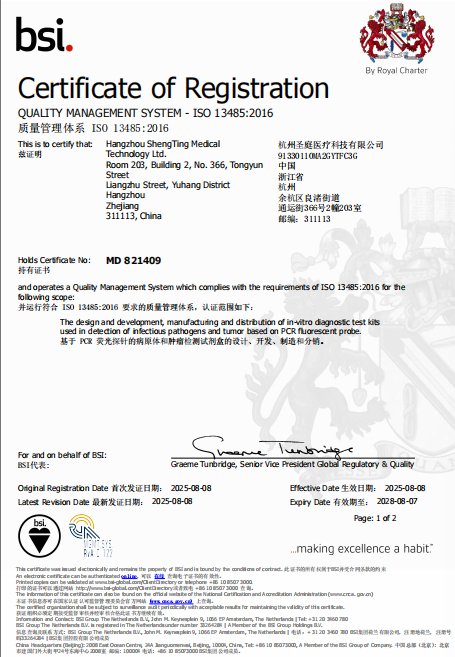 圣庭醫(yī)療ISO13485質(zhì)量體系獲得權(quán)威機(jī)構(gòu)BSI專業(yè)認(rèn)可,進(jìn)一步夯實(shí)了圣庭醫(yī)療在產(chǎn)品質(zhì)量、運(yùn)營等方面的優(yōu)勢,更為公司進(jìn)一步拓展海外市場、加快國際化經(jīng)營進(jìn)程注入了強(qiáng)勁動(dòng)能!